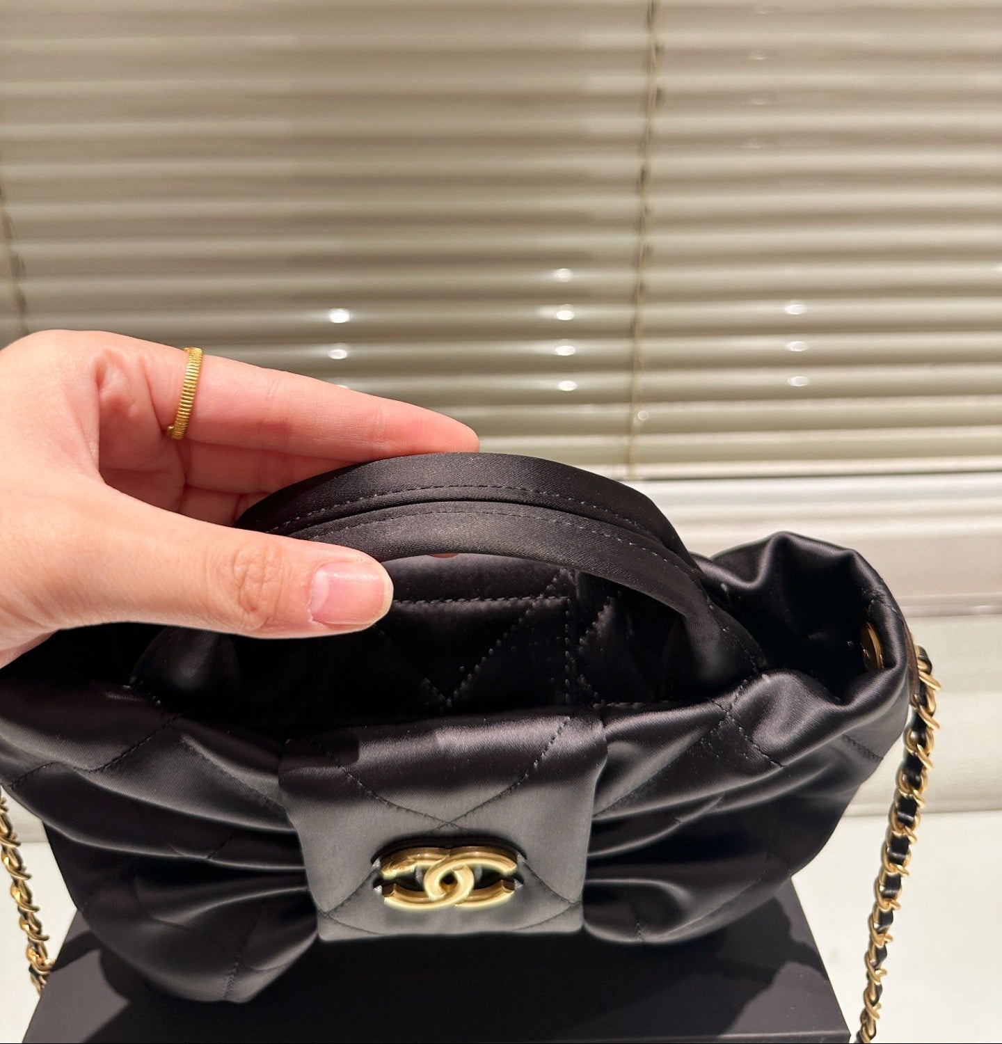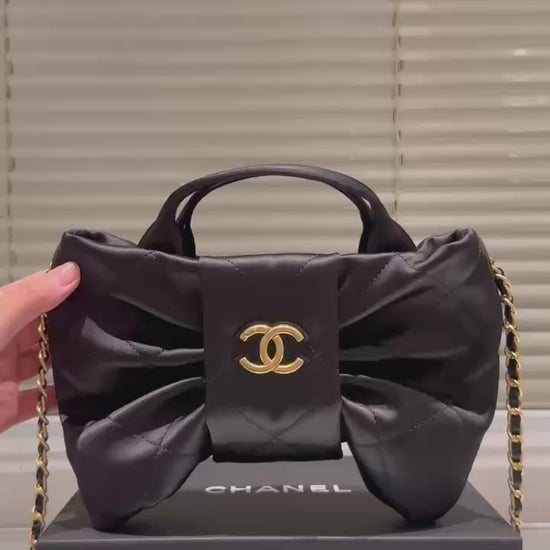 Design: Elegant bow detail with classic CHANEL chain strap