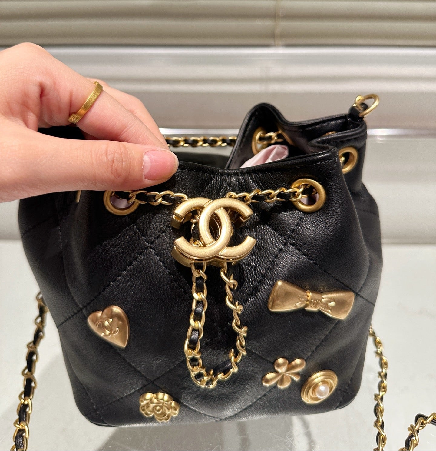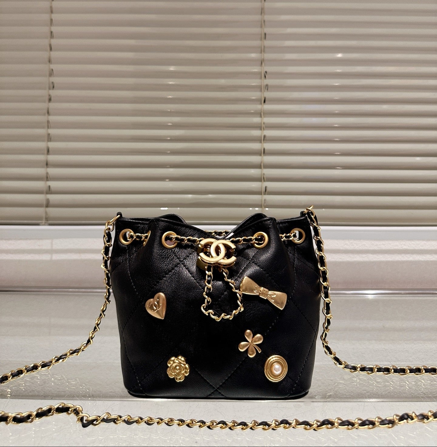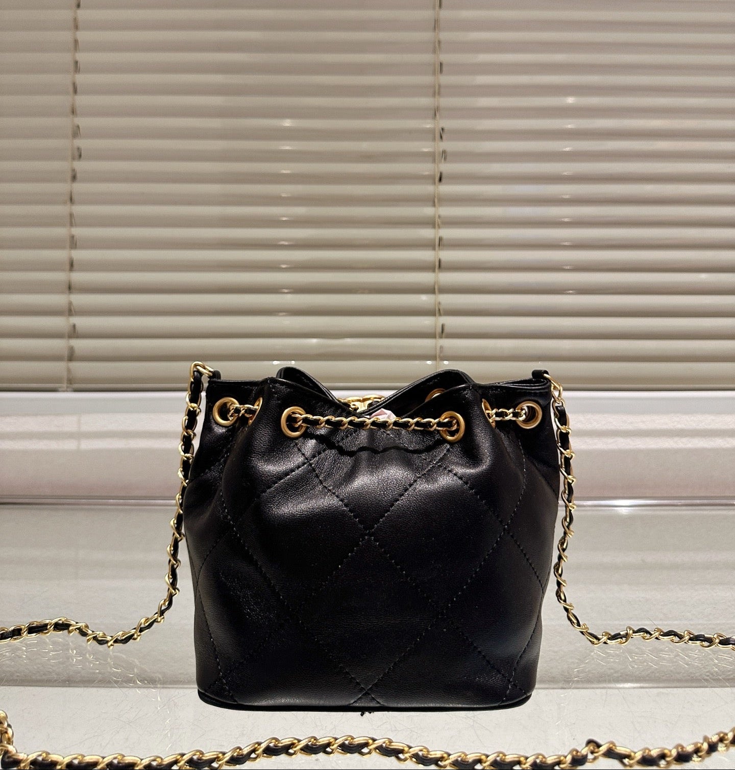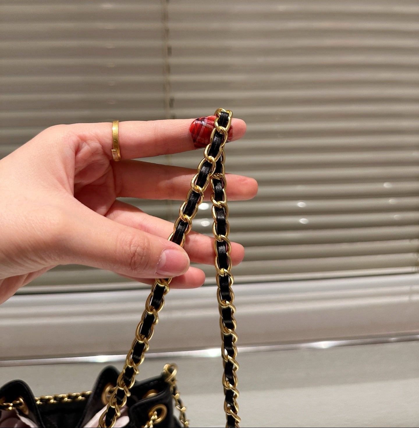 Product Type: 25K Black & Gold Drawstring Bucket Bag (Replica Version)