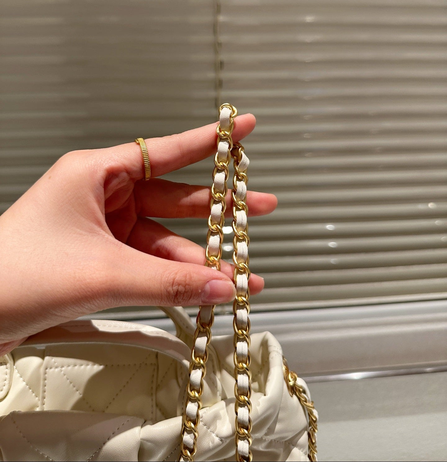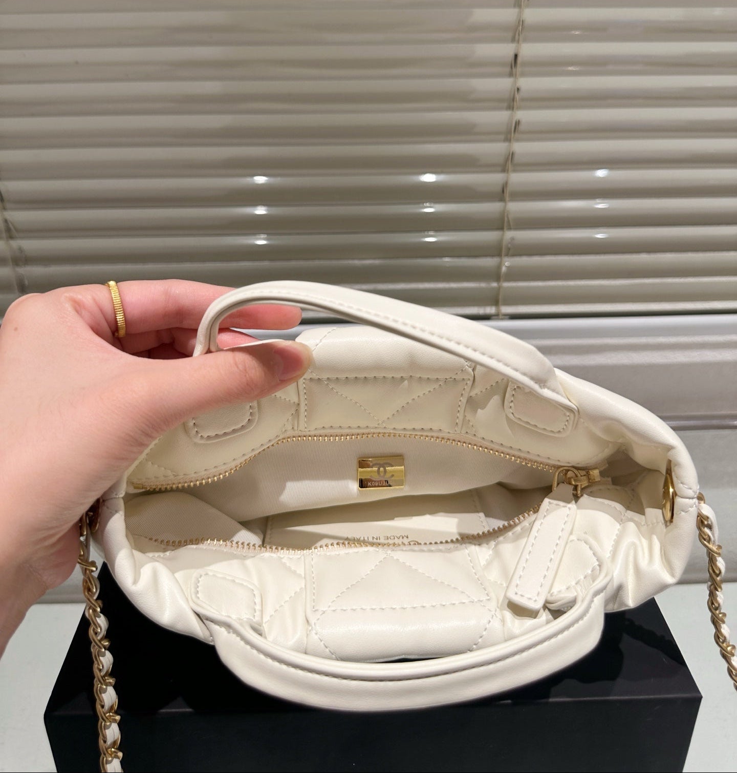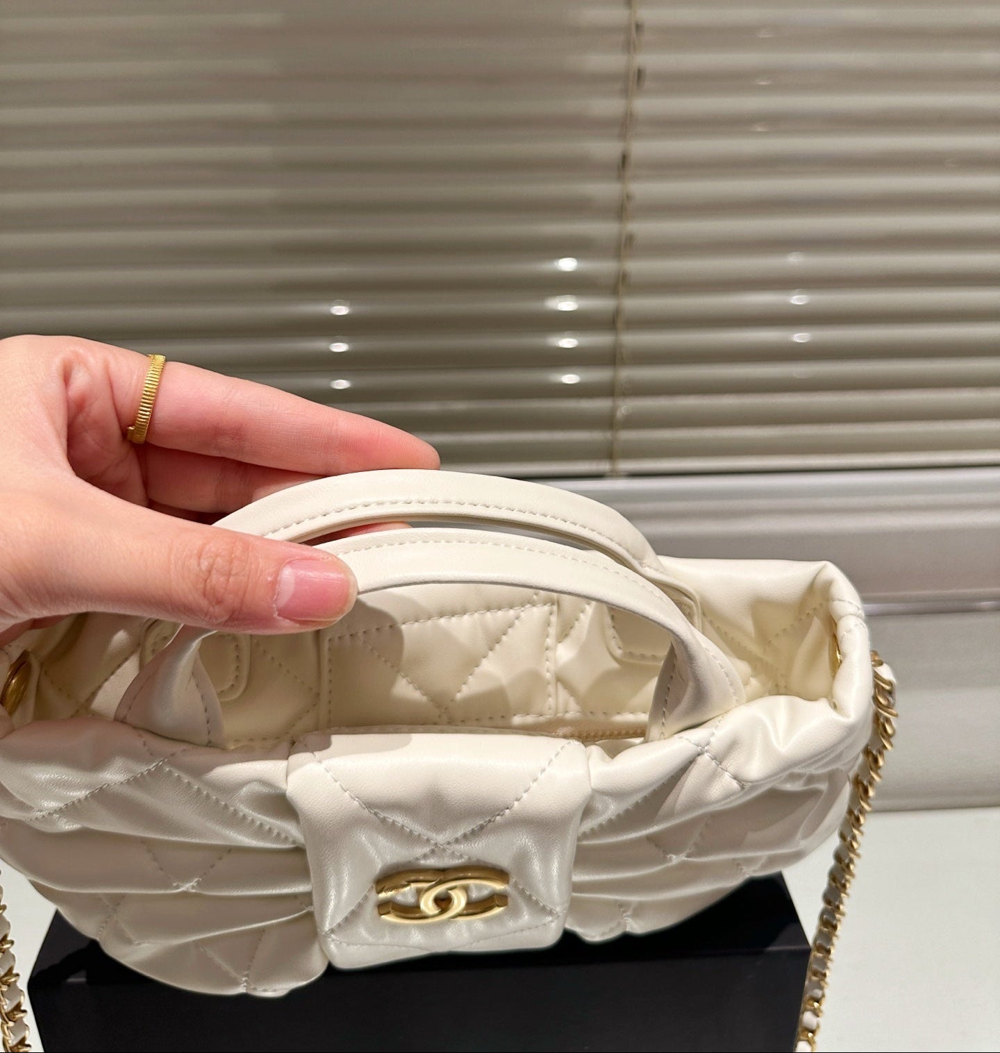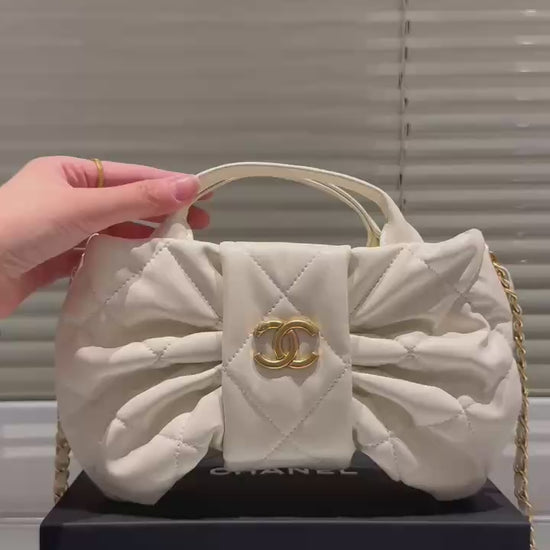 Design: Elegant bow detail with classic CHANEL chain strap