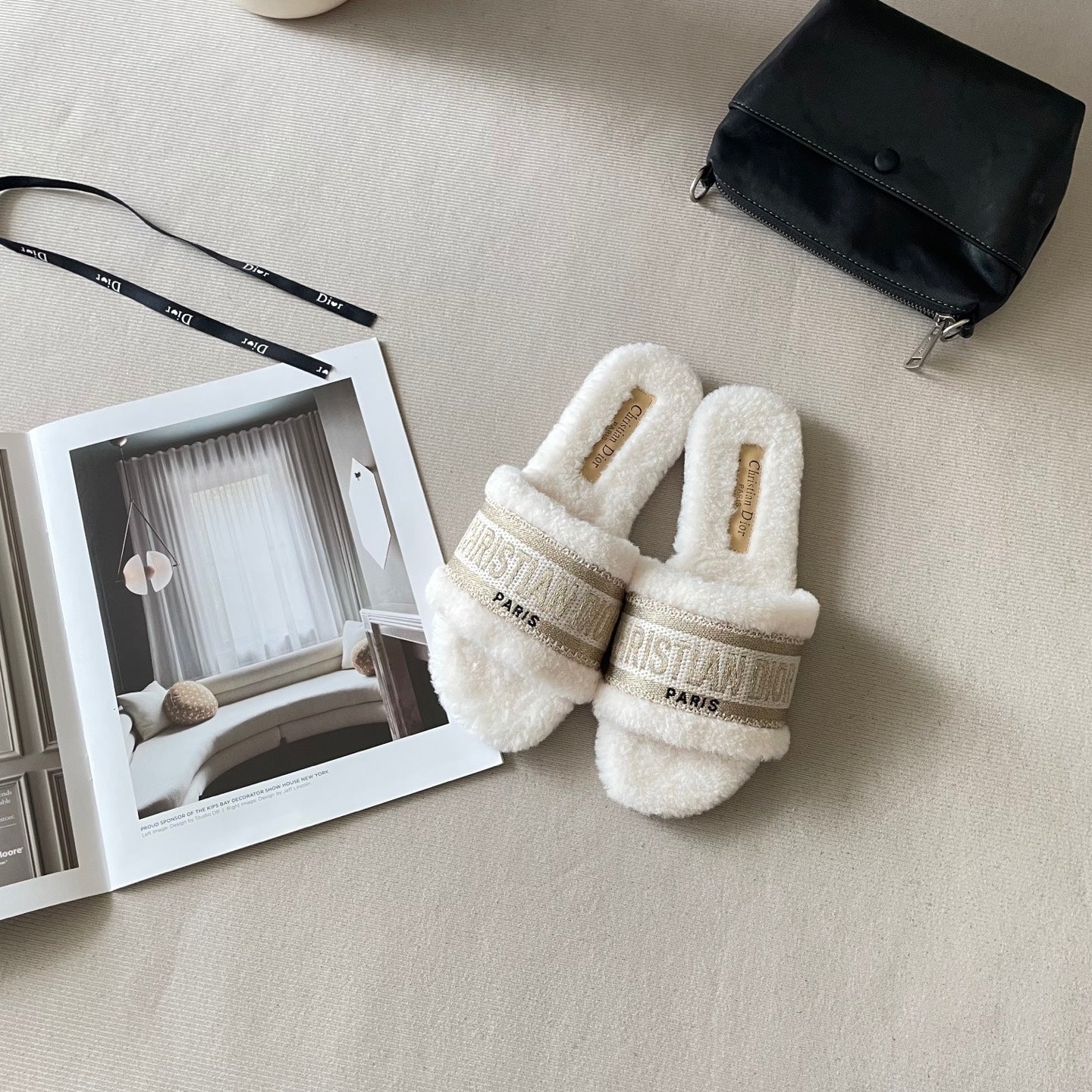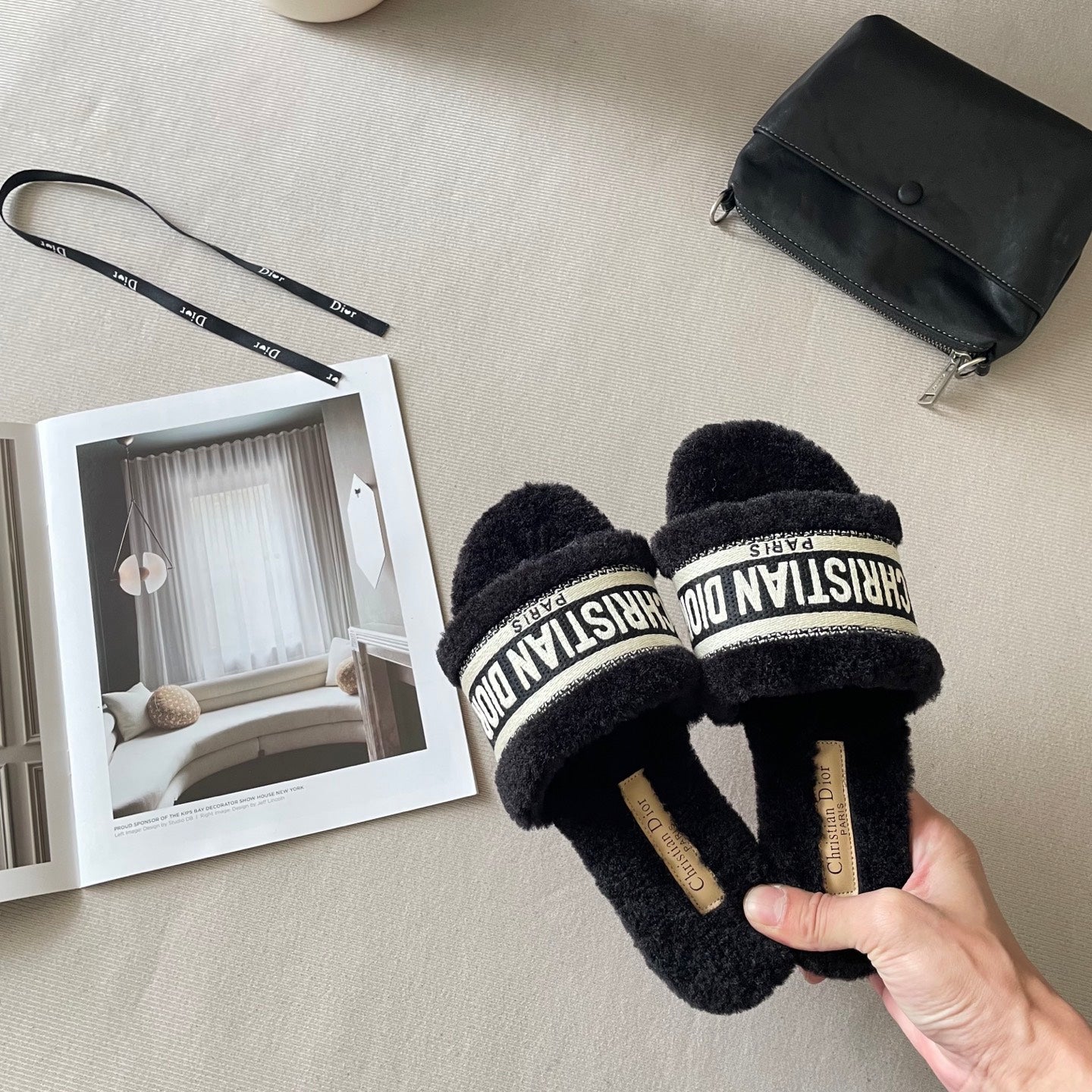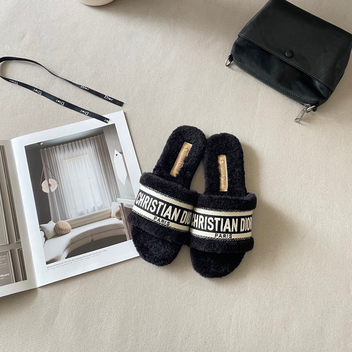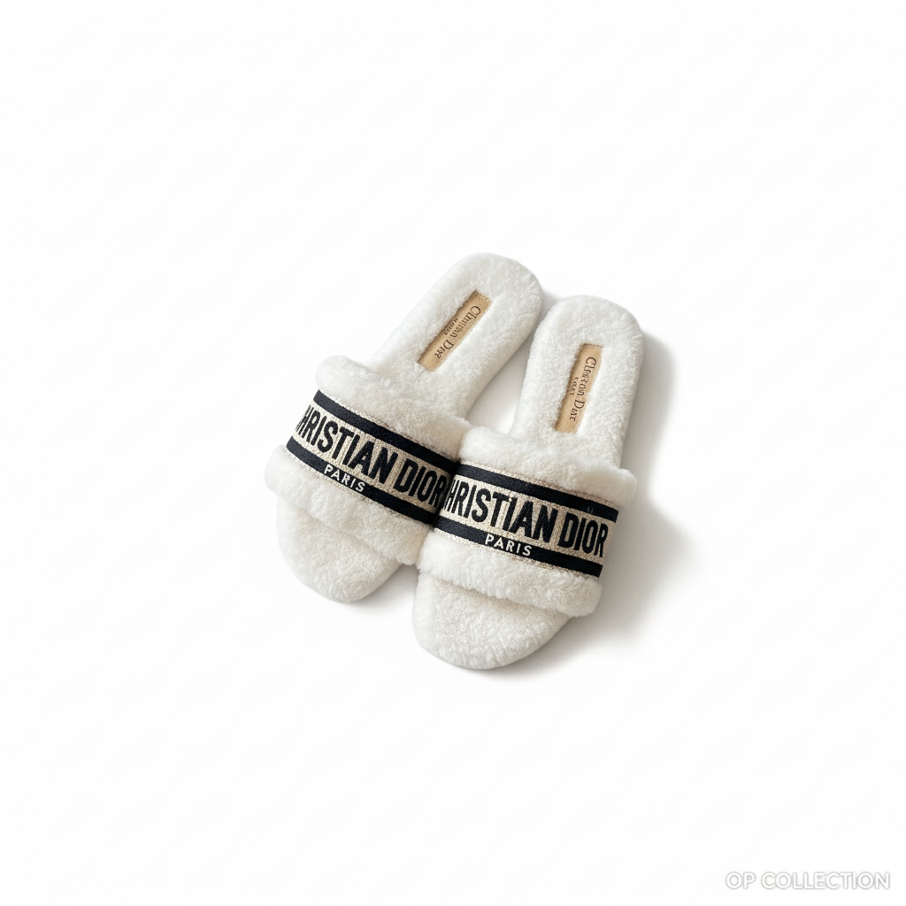 Dior Wool Slides / Shearling Slippers – the ultimate cozy-chic look for Autumn/Winter.