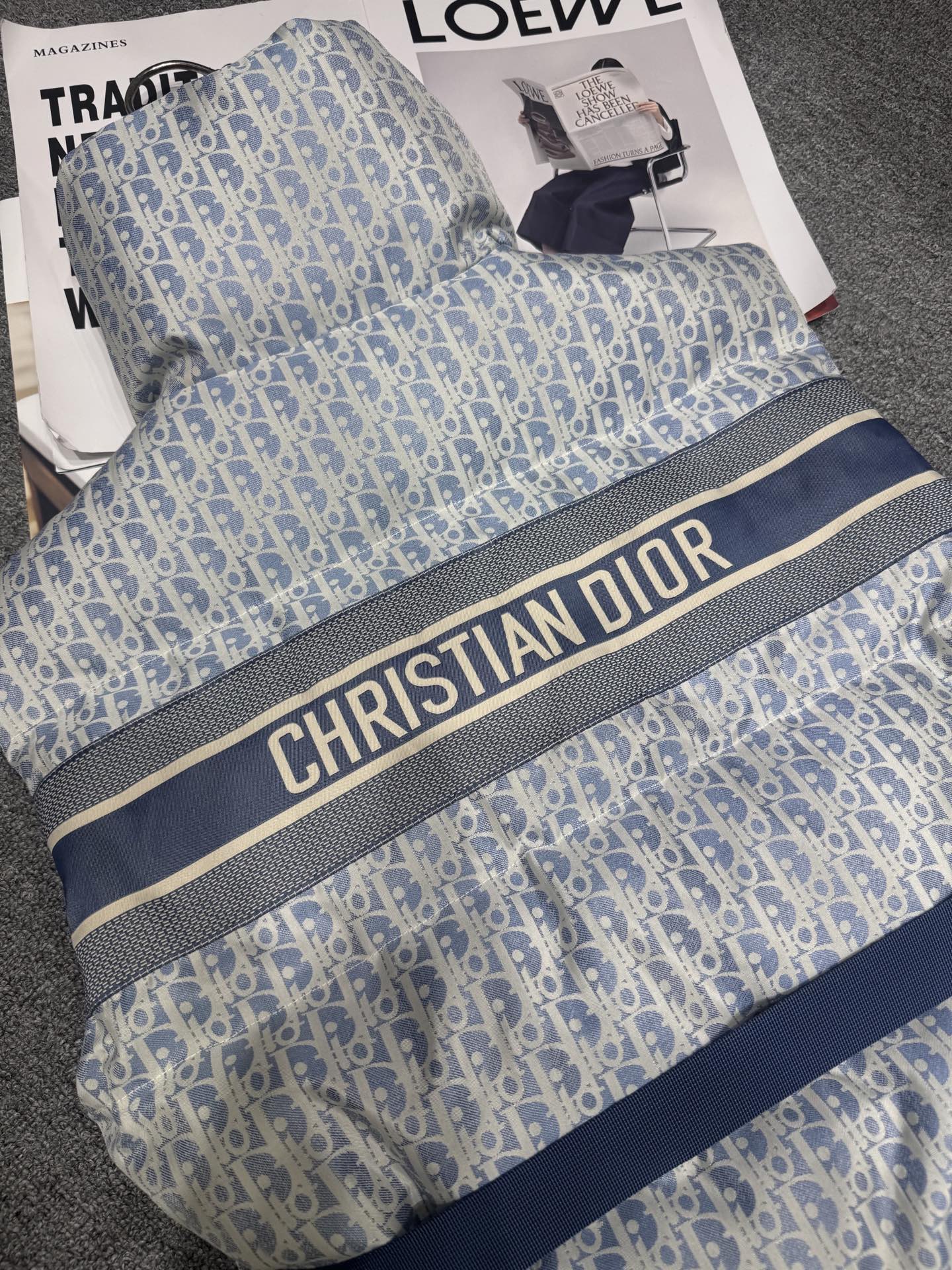 Dior-Inspired Luxury Puffer Vest – Blue Monogram Edition ✨