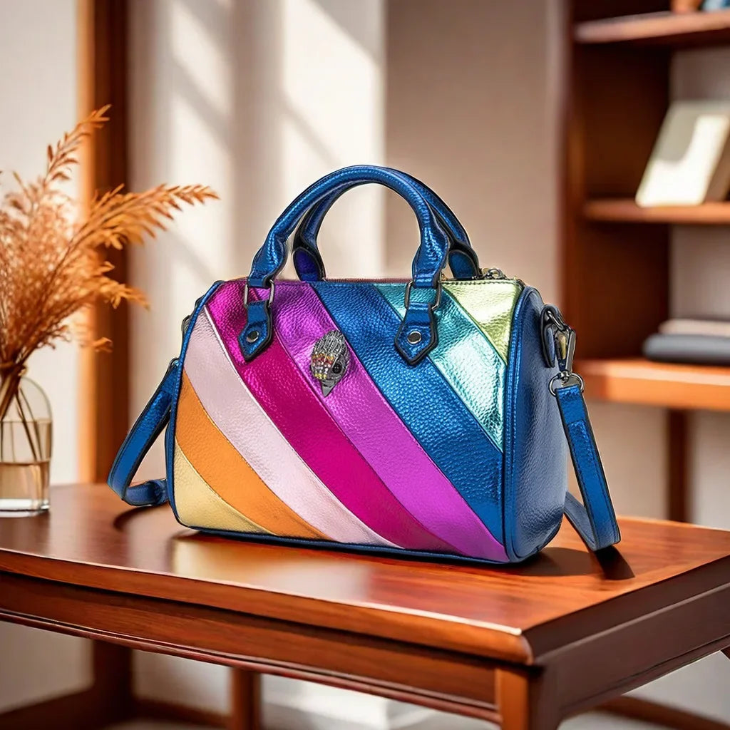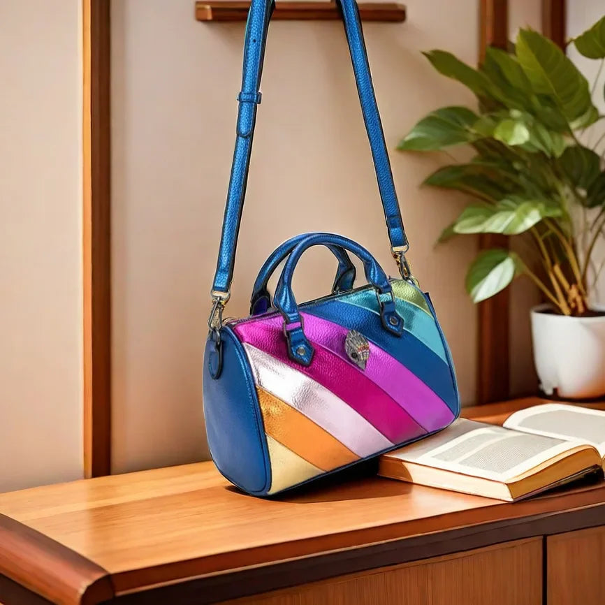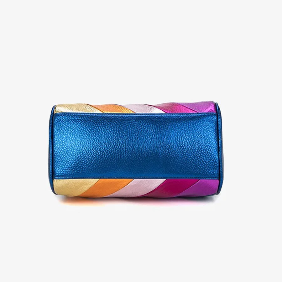 • Rainbow Contrast Color Stitching : The unique rainbow contrast color stitching adds a pop of color and visual interest to the bag's otherwise simple design.